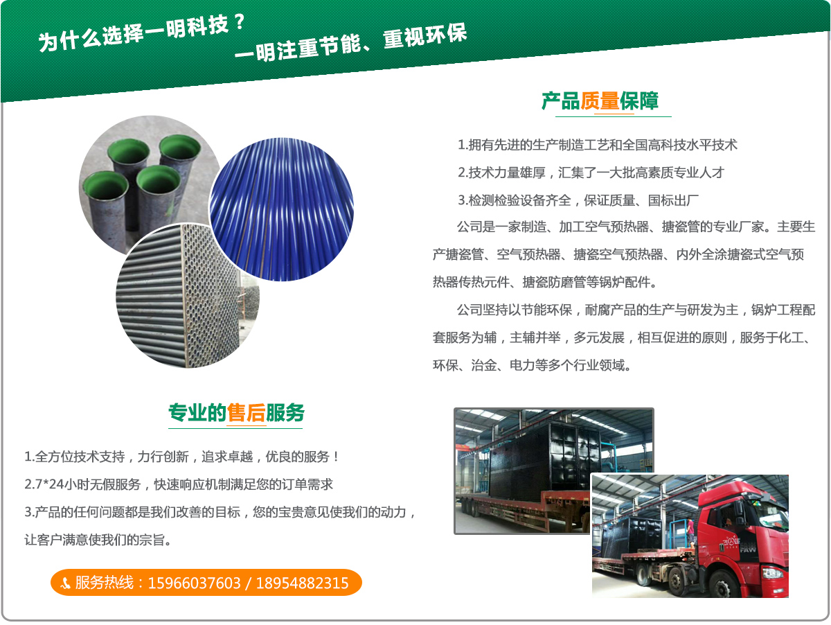 山東一明節(jié)能環(huán)保設(shè)備科技有限公司坐落于山東省肥城市,地處山東中部、泰山西麓,是資源豐富的魯中福地,文明中外的肥桃之鄉(xiāng)。肥城是有名的明星市、綜合實(shí)力縣(市)和山東省經(jīng)濟(jì)縣(市)、精神文明建設(shè)市。肥城有著豐富的歷史文化,古稱(chēng)“君子之邑”,是史圣左丘明的家鄉(xiāng),商圣范蠡定居之地。公司是一家制造、加工空氣預(yù)熱器、搪瓷管廠(chǎng)家。主要生產(chǎn)搪瓷管、空氣預(yù)熱器、搪瓷空氣預(yù)熱器、內(nèi)外全涂搪瓷式空氣預(yù)熱器傳熱元件、搪瓷防磨管等鍋爐配件。公司堅(jiān)持以節(jié)能環(huán)保,耐腐產(chǎn)品(空氣預(yù)熱器、搪瓷管、管箱)的生產(chǎn)與研發(fā)為主,鍋爐工程配套服務(wù)為輔,主輔并舉,多元發(fā)展,相互促進(jìn)的原則,服務(wù)于化工、環(huán)保、治金、電力等多個(gè)行業(yè)領(lǐng)域。是專(zhuān)門(mén)為電力、石化、紡織、印染等行業(yè)開(kāi)發(fā)、設(shè)計(jì)、制造傳熱元件及配套設(shè)備的生產(chǎn)廠(chǎng)家。公司展望未來(lái),我們謹(jǐn)持“質(zhì)量、誠(chéng)信、創(chuàng)新”的企業(yè)精神,繼續(xù)以客戶(hù)需求為導(dǎo)向,增加市場(chǎng)能力,為提升中國(guó)節(jié)能環(huán)保產(chǎn)業(yè)的整體水平...